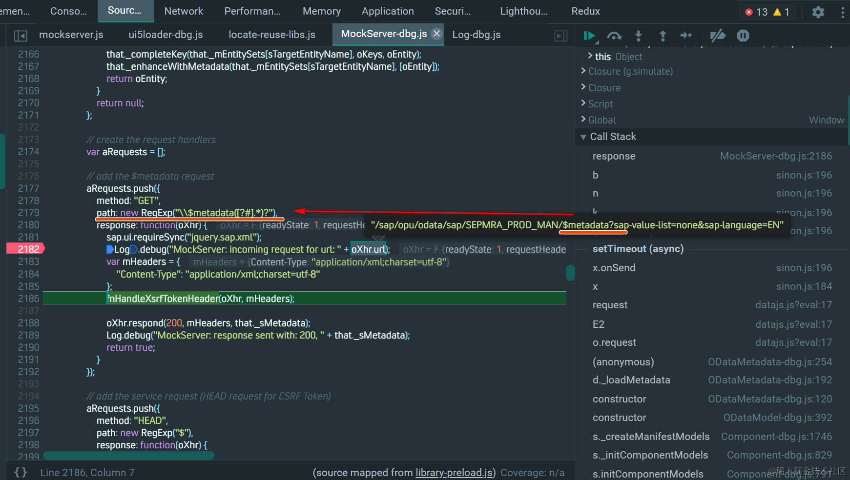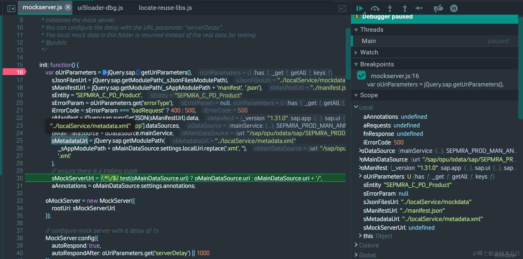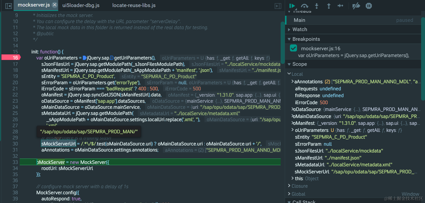 mock server url:/sap/opu/odata/sap/SEPMRA_PROD_MAN/ 和正常模式下运行的 OData server url 相比没有变化,