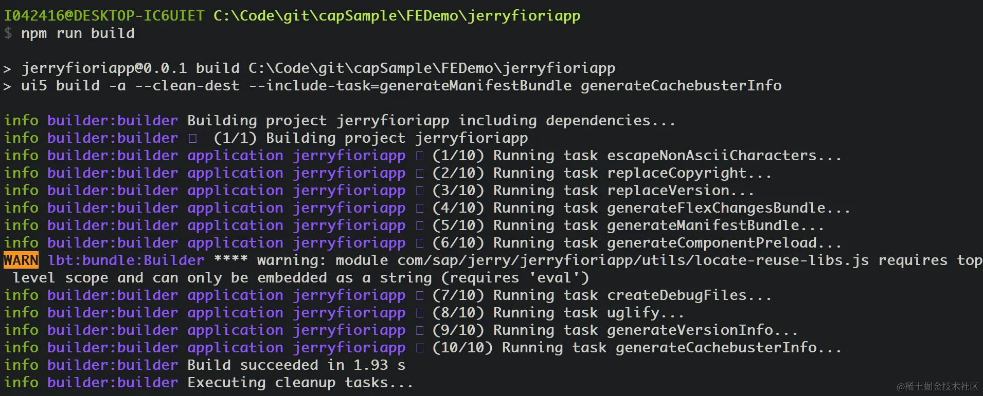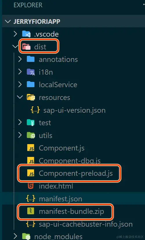 成功生成了 dist 文件,里面包含 component-preload.js, manifest-bundle.zip.