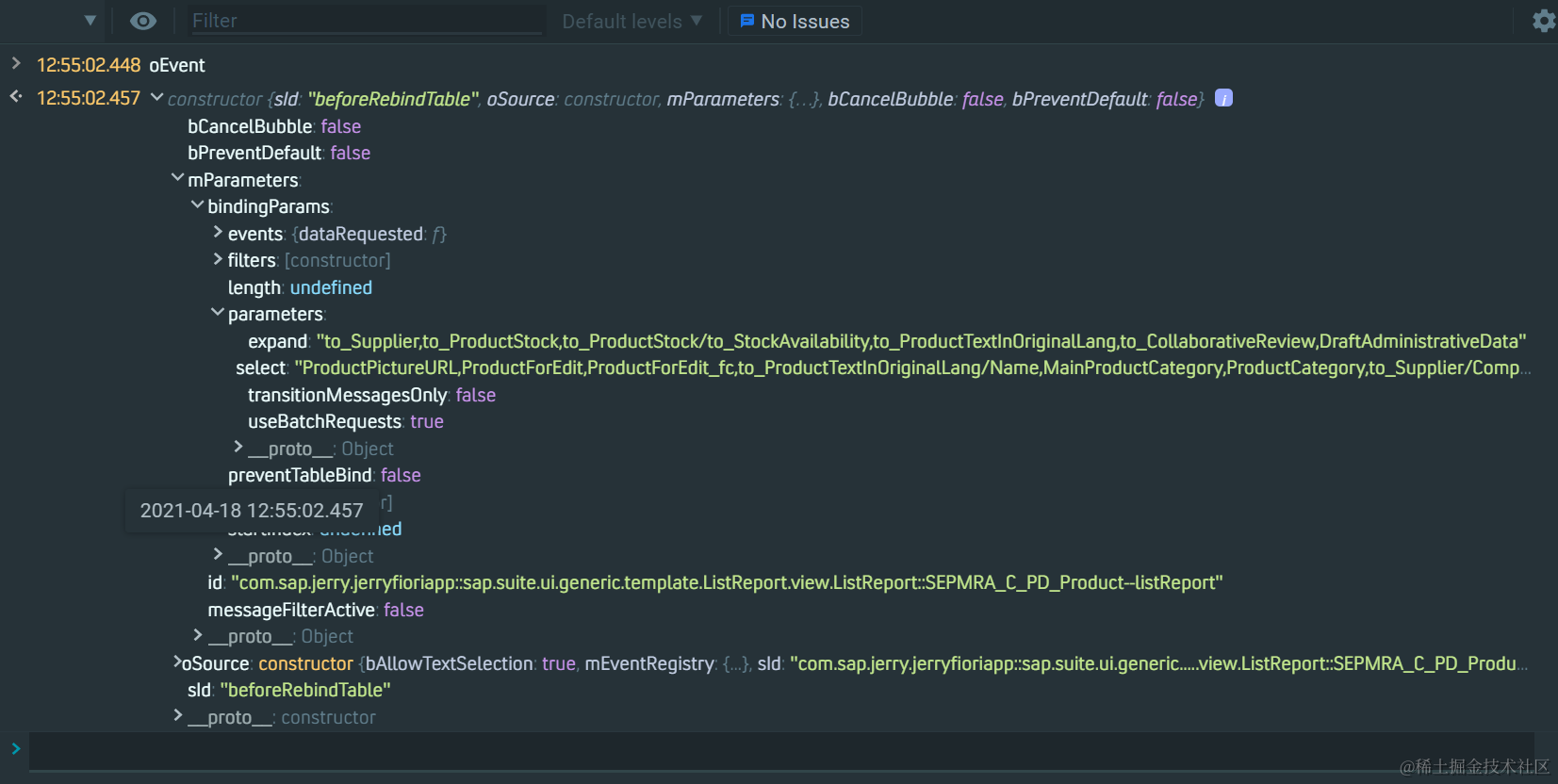 oEvent 输入参数里,能观察到 OData select 参数: