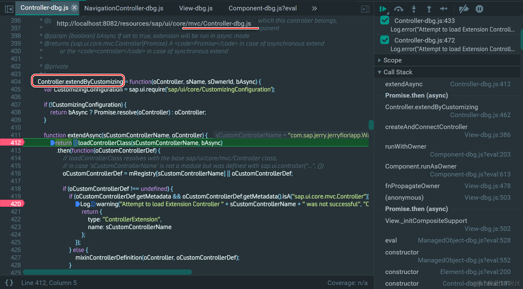 Controller.extendByCustomizing 里: