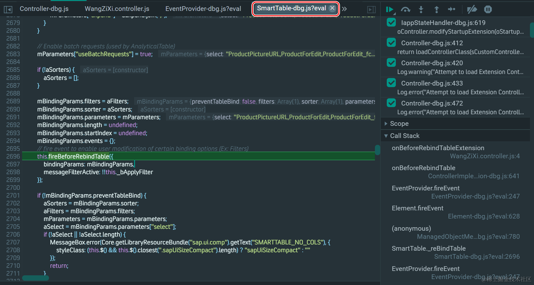 在 SmartTable.js 的标准实现逻辑里,通过 fire event 的方式,触发应用开发人员定义的 Extension 的逻辑: