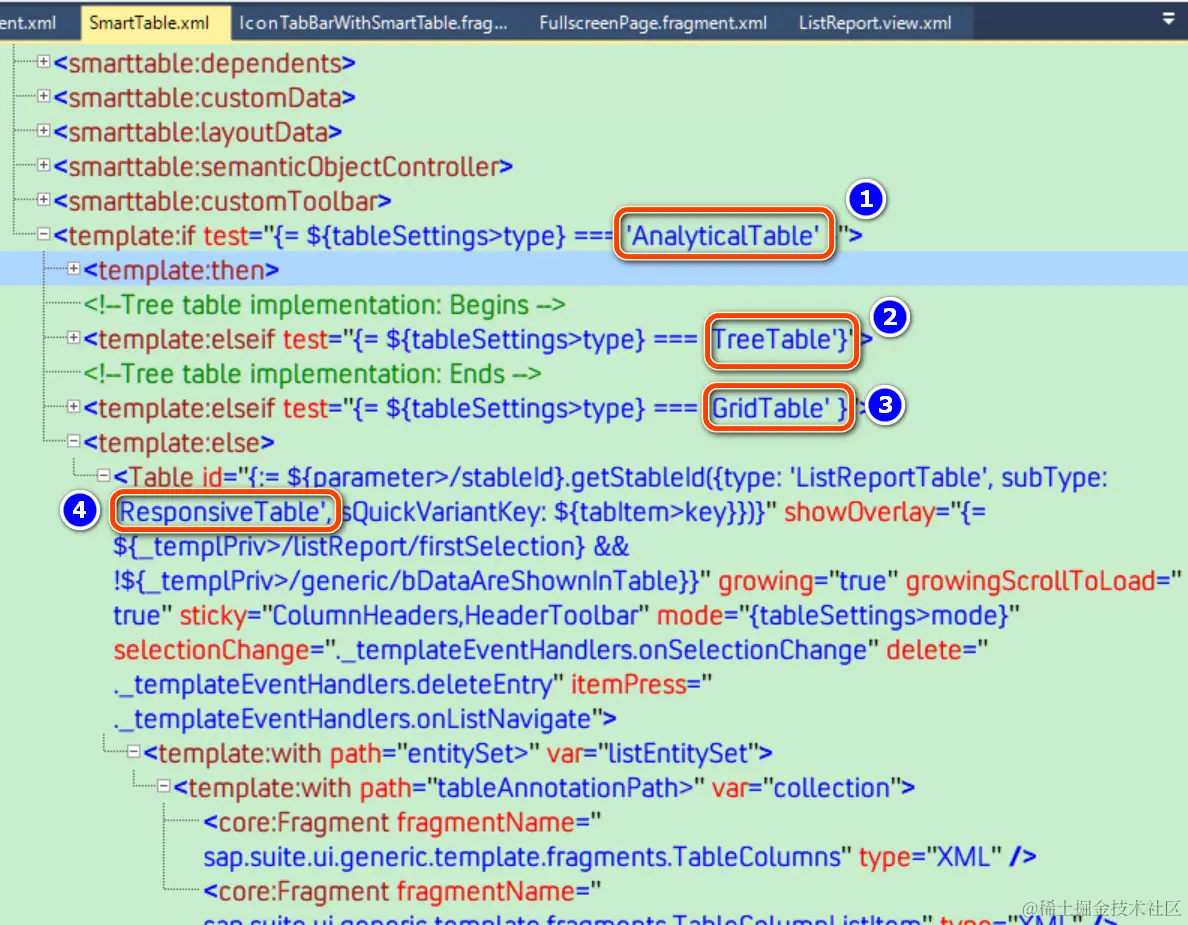 从 SAP Fiori Elements 实现源代码中的 SmartTable.xml 能看出,ListReport 类型的 SAP Fiori Elements 应用,其表格类型包含 4 种: