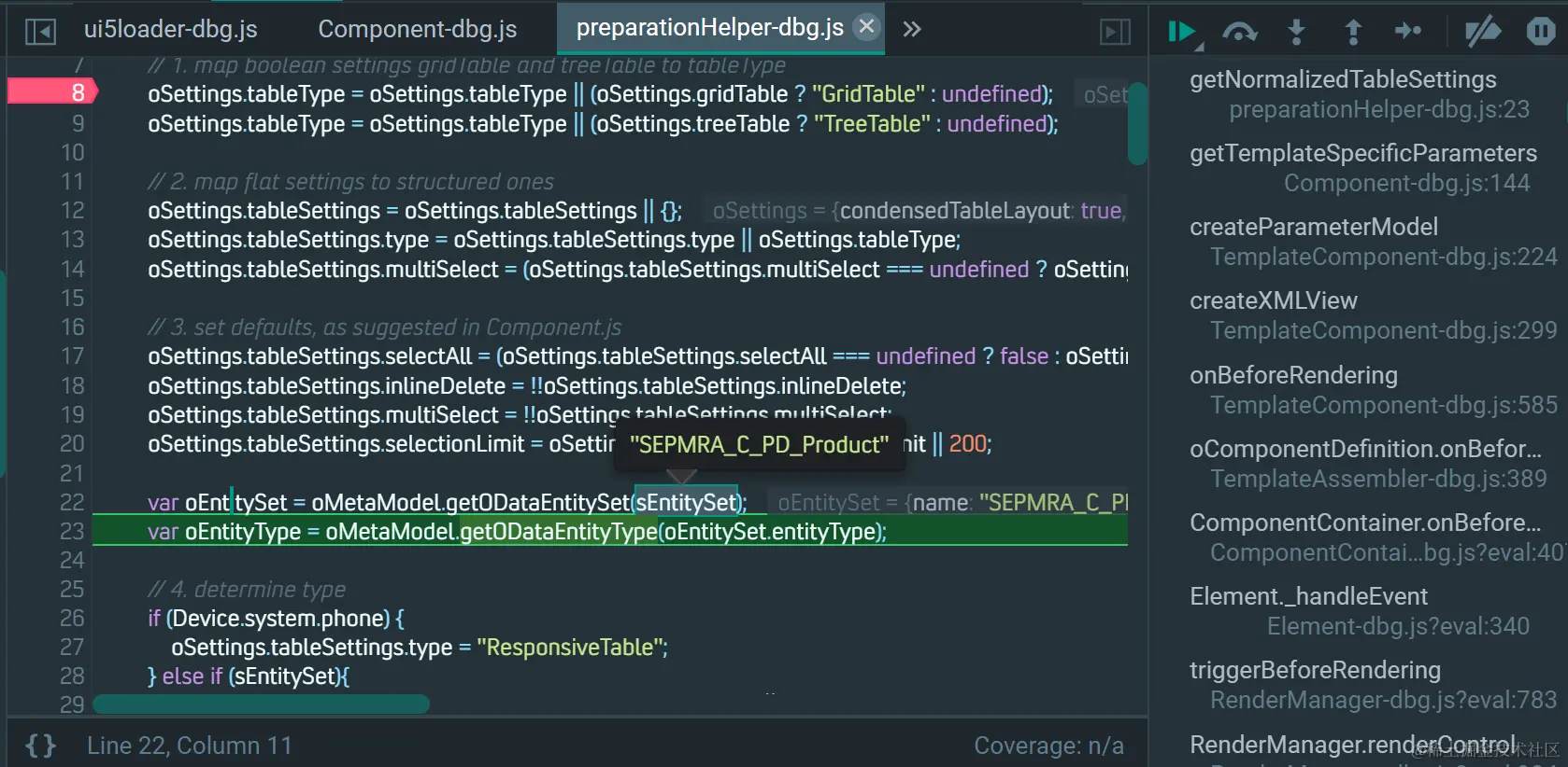 此处可见,如果 OData entity type 的 sap:semantics 值为 aggregate,则 table 类型为 AnalyticalTable, 否则为 ResponsiveTable.