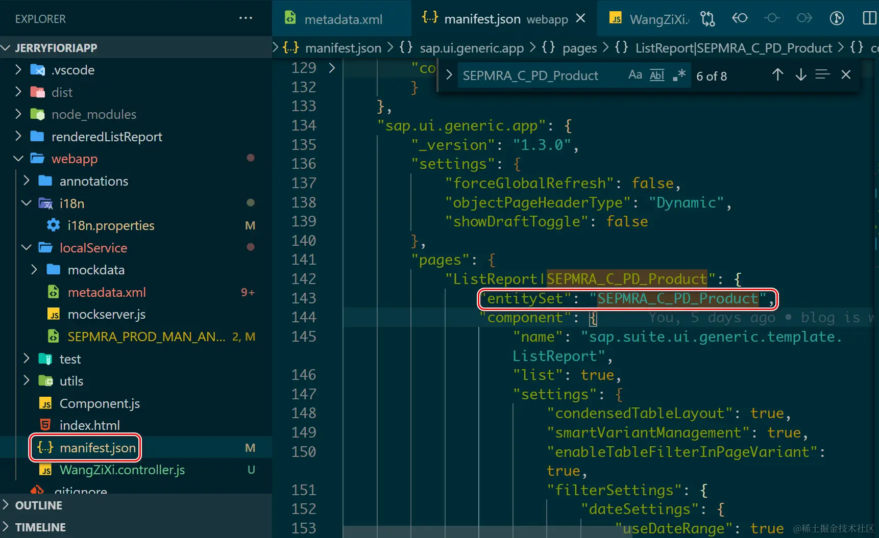 这个 entityType 对应 manifest.json 文件里定义的 List Report 应用能够工作,所必需的 Main Entity Set: