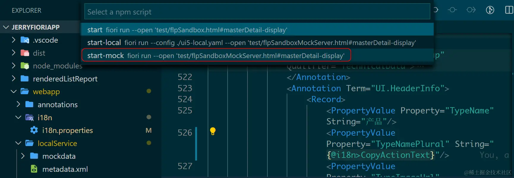 在 Visual Studio Code 命令栏里,使用 start-mock,则能够以本地 mock 数据启动这个 Fiori Elements List Report 应用。
