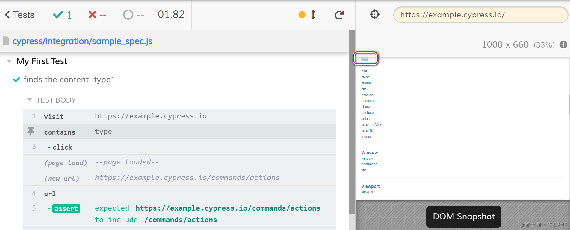 4. cy.contains(‘type’)