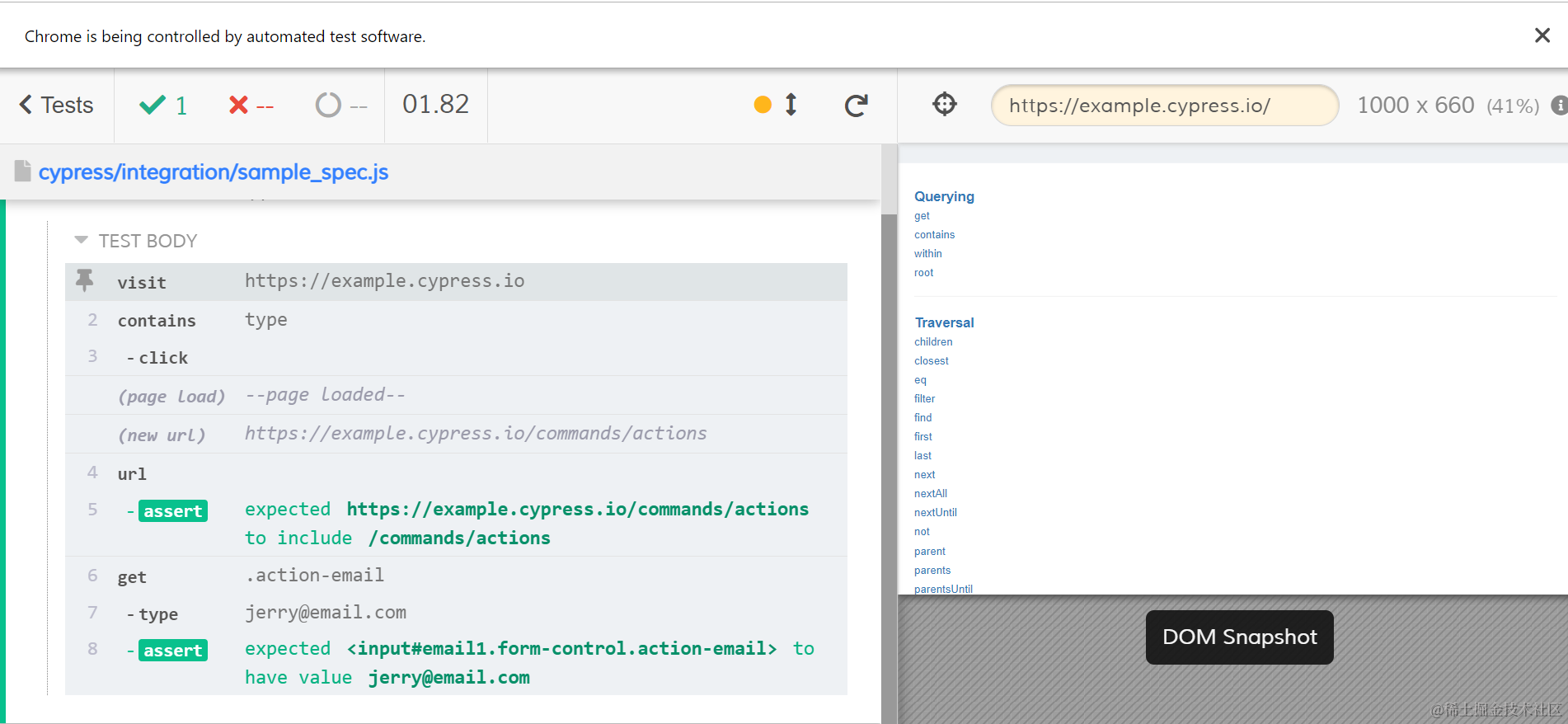 这使得我们完全不用担心,我们书写的 Cypress 程序里的指令,会运行在一个正在加载中的页面。