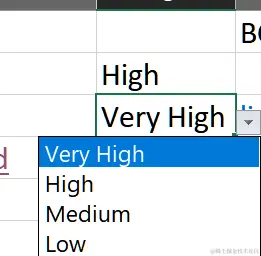 如果期望选中不同的下拉菜单选项后,自动高亮元素,比如 Very High 的单元格,显示成红色来起到警示的作用,那么在 Home 里面,选择 Conditional Formatting -> Highlight Cells Rules: