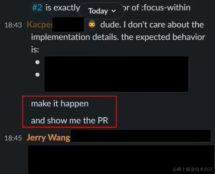 第一次收到同事用 “I don’t care about XXX. The expected behavior is XXX. Make it happen, and show me the PR” 的口吻下达的命令。