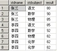 --CREATE TABLE #student (stdname nvarchar(10),stdsubject nvarchar(10),result int)