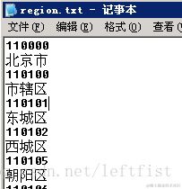 然后将页面上的代码直接复制粘贴到记事本,保存为 e:\temp\region.txt。