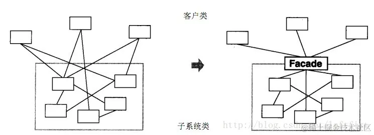 《设计模式》学习笔记——外观模式 leftfist 2021-04-26 73 阅读1分钟 外观模式的作用,是对外提供一个统一的接口。如图所示: \ 看了图,一切尽在不言中。 \ 为外部提供一个合适的接口,令人想起适配器模式。适配器模式和外观模式都是为方便统一调用而增加一个接口类,适配器是针对某一个奇形怪状的类,可能多个类就有多个适配器;而外观模式是为调用众多的类提供一个公共接口。