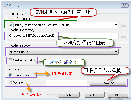 在本机创建文件夹StartKit,右键点击Checkout,弹出如下图的窗体:\