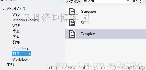 1)创建T4 Toolbox模板文件EntityTemplate.tt,作用是生成多个实体类文件