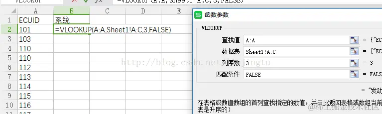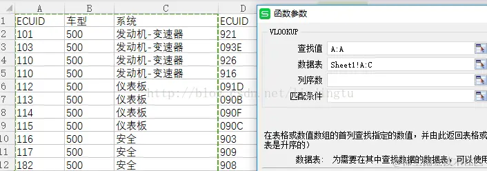 对于第一个参数:查找值,就是你要查找的ID索引值,可以为数值、引用或文本字符串,本表格中为第一列A:A