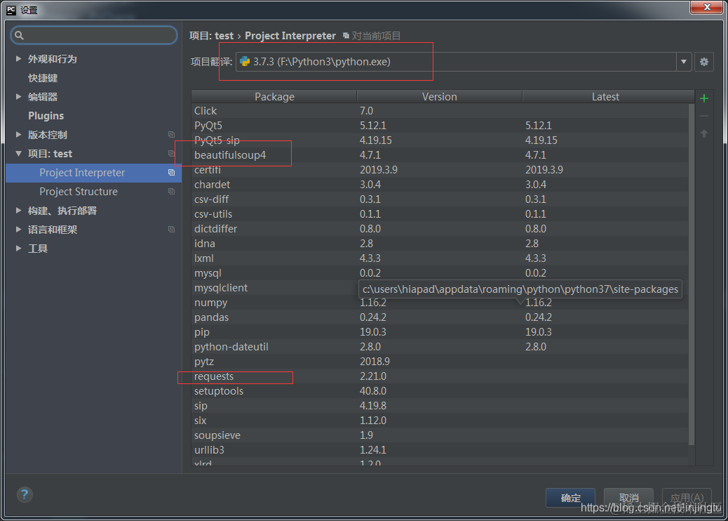 安装Python3.7.3,beautifulsoup4, requests