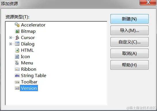 vs中动态DLL与静态LIB工程中加入版本信息的方法 虚拟大师 2021-04-26 104 阅读1分钟 步骤1 - 在工程中右键添加新建项 步骤2 - 选择创建RC资源文件 步骤3 - 切换资源视图并添加资源 步骤4 - 选择Version类型并新建 步骤5 - 修改成你需要的版本信息即可 步骤6 - 之后则可以在资源视图下找到VS_VERSION_INFO项进行修改即可