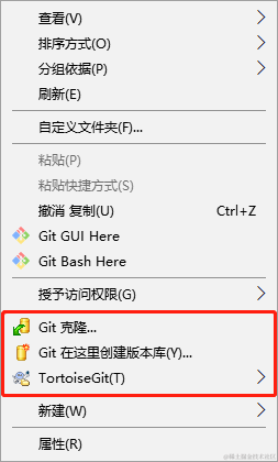 2、安装TortoiseGit客户端,安装成功后在文件夹右键会出现下面界面: