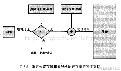 CPU所生成的地址称为逻辑地址,而内存单元对应的地址(即加载到内存地址寄存器的地址)称为物理地址。从逻辑地址到物理地址的映射由硬件设备(内存管理单元,MMU)完成。用户只生成逻辑地址,这些地址在使用前必须映射到物理地址。用户程序决不会看到真正的物理地址。