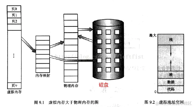 而虚拟内存则允许执行进程部分在内存中,一个显著的优点是程序可以比物理内存大。而且虚拟内存将内存抽象成一个巨大的数组,将用户视界的逻辑内存与物理内存分离,使得程序员不受内存存储的限制。简而言之,虚拟内存展现在程序员面前的是一个比物理内存要大得多的、地址连续的内存空间,而事实上是映射到支离破碎的物理内存,乃至磁盘上。