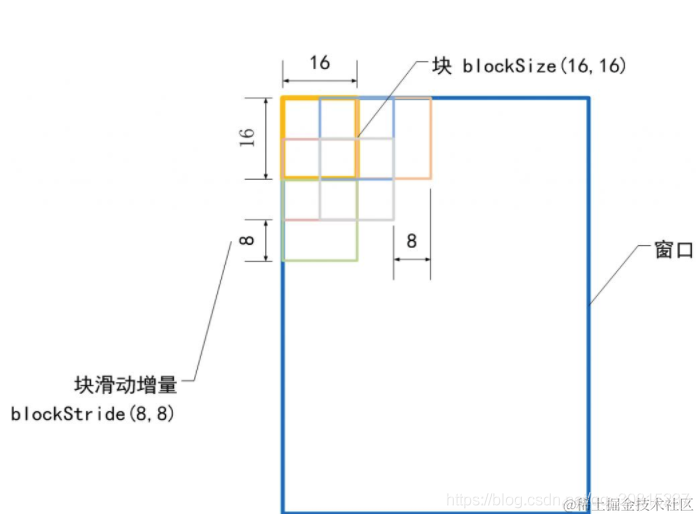 窗口大小 winSize(64,128), 块大小blockSize(16,16), 块滑动增量blockStride(8,8), 胞元大小cellSize(8,8), 梯度方向数nbins(9)。