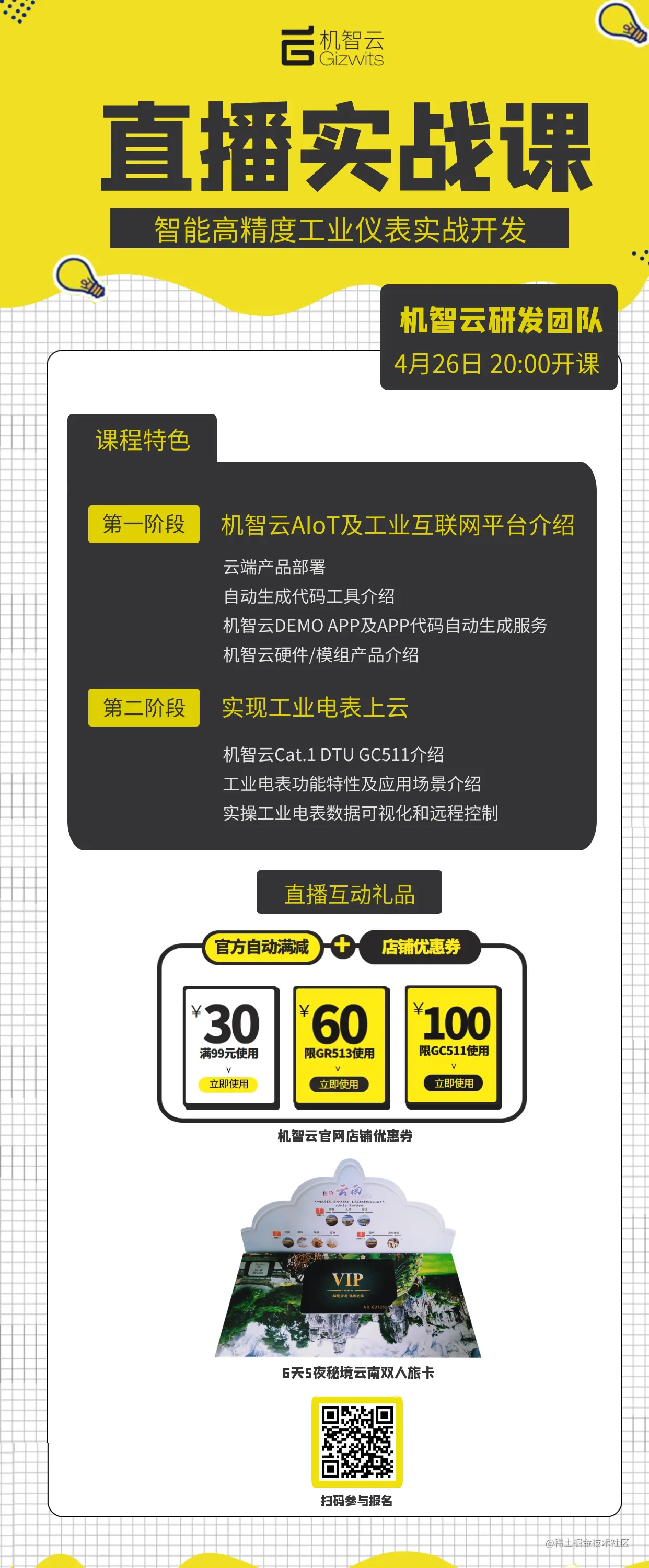快快跟随小编一起先睹为快,机智云实战开发直播课程,学习生活两不误,惊喜大奖等您来领取!
