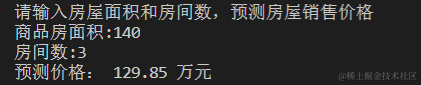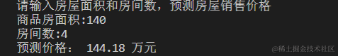 print("请输入房屋面积和房间数,预测房屋销售价格")
