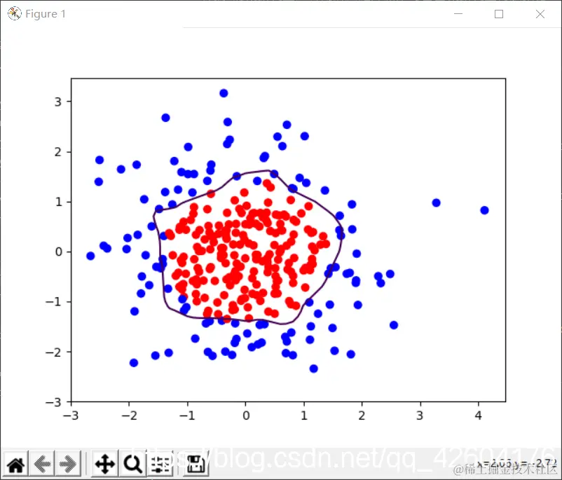 示例:利用神经网络区分蓝色点和红色点