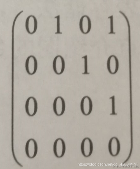 A[i][j]={1,当顶点i与顶点j之间有边 0,当顶点i与顶点j之间没有边}