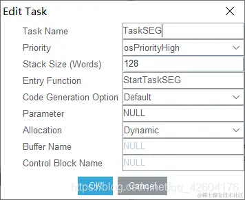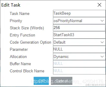 接下来为我们的程序配置四个任务,注意这里我们的三个任务的优先级是一样的。如果你设置了某一个任务的优先级高,那么程序运行时会一直运行那个任务而无法进入其他任务。