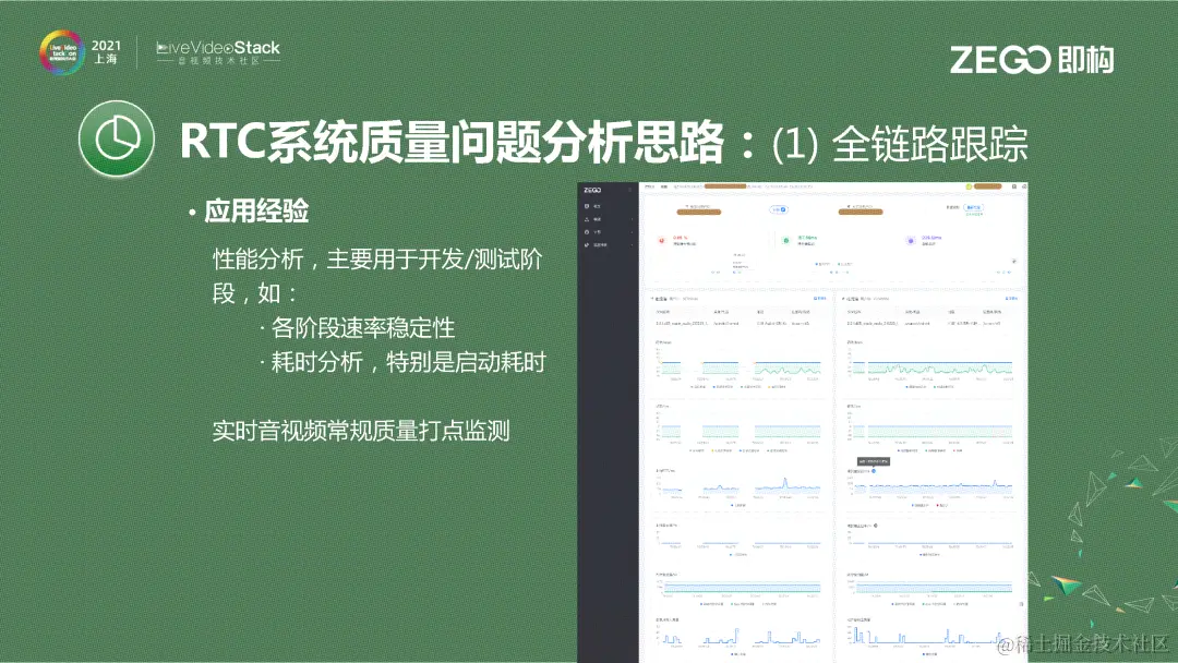 刚刚描述的是RTC业务生产消费串行过程,结合实时性要求,这些特征可以指导我们去做系统观测。我们需要观测这个系统的运行情况,才能识别出它的问题把系统做好。这需要各种数据去支撑,观测各个生产消费环节,刻画整个过程。