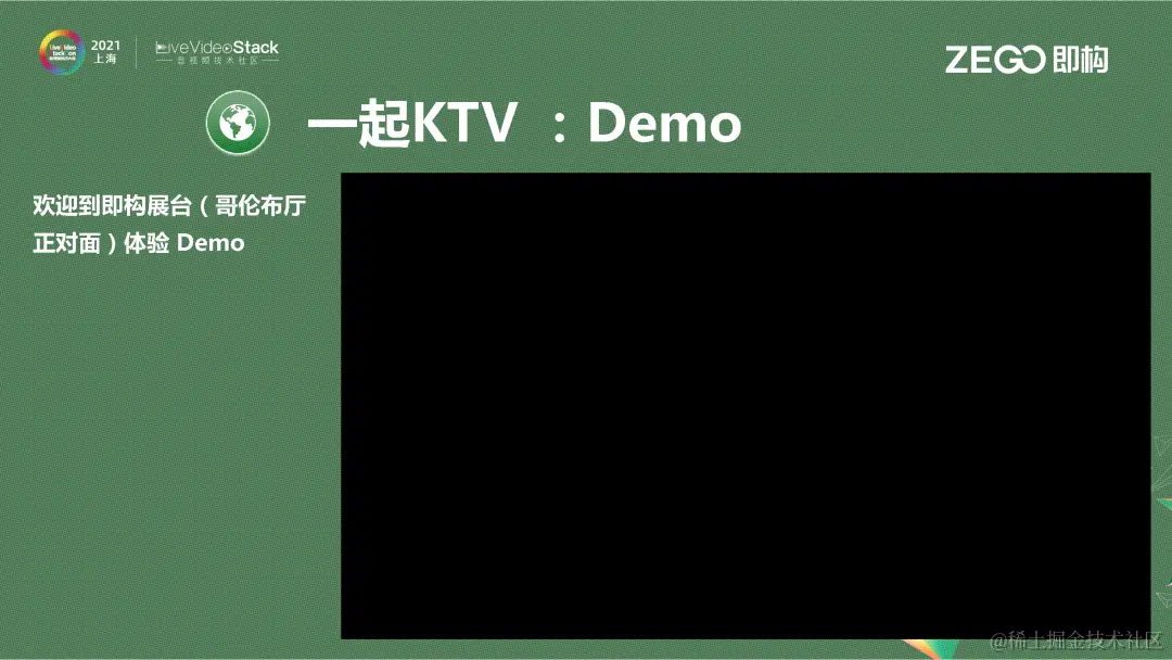 即构主要希望不同端、不同地域的人在一起唱歌时都像是在KTV唱歌,内部测试在普通要求下已经可以达到KTV效果了。同时提供Demo在展台体验。(Demo下载地址: doc-zh.zego.im/scene-plan/…