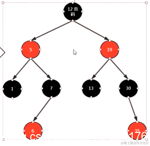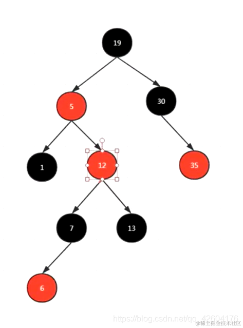 然后再看是不是符合变色的前提:显然不符合,因为12的叔结点30不是红色。那么这时就应该判断是否符合左旋的前提了。