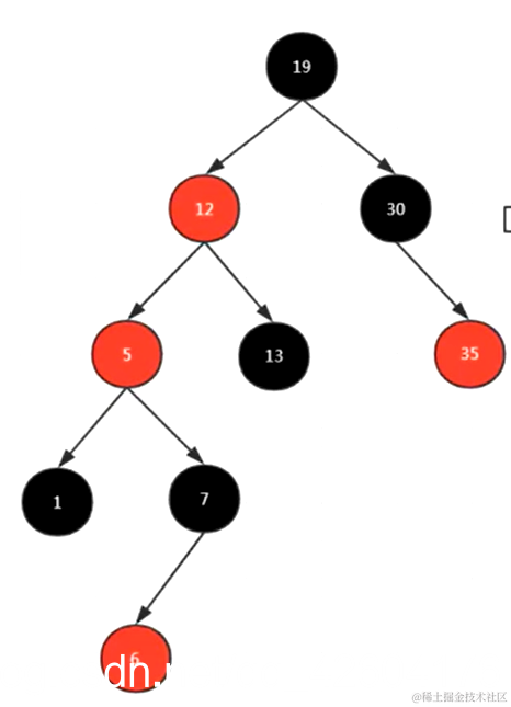 观察变色之后的树,发现仍然是违反规则的:5、12两个红色连在一起了。