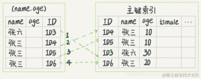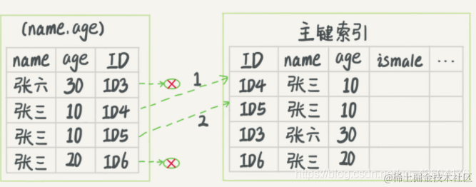 反之,如果我们有个频繁的要求:根据该人身份证找到该人姓名,那么应该建立联合索引:(ID,name)