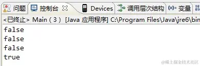 输出结果为false。这里面虽然将b用final修饰了,但是由于其赋值是通过方法调用返回的,那么它的值只能在运行期间确定,因此a和c指向的不是同一个对象。