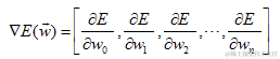 可以通过计算E相对向量w的的每个分量的导数来得到这个方向。这个向量导数被称为E对于W的梯度(gradient),记作ΔE(w).
