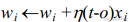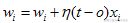 修改后的训练法则与公式2相似,只是在迭代计算每个训练样例时根据下面的公式来更新权值:\