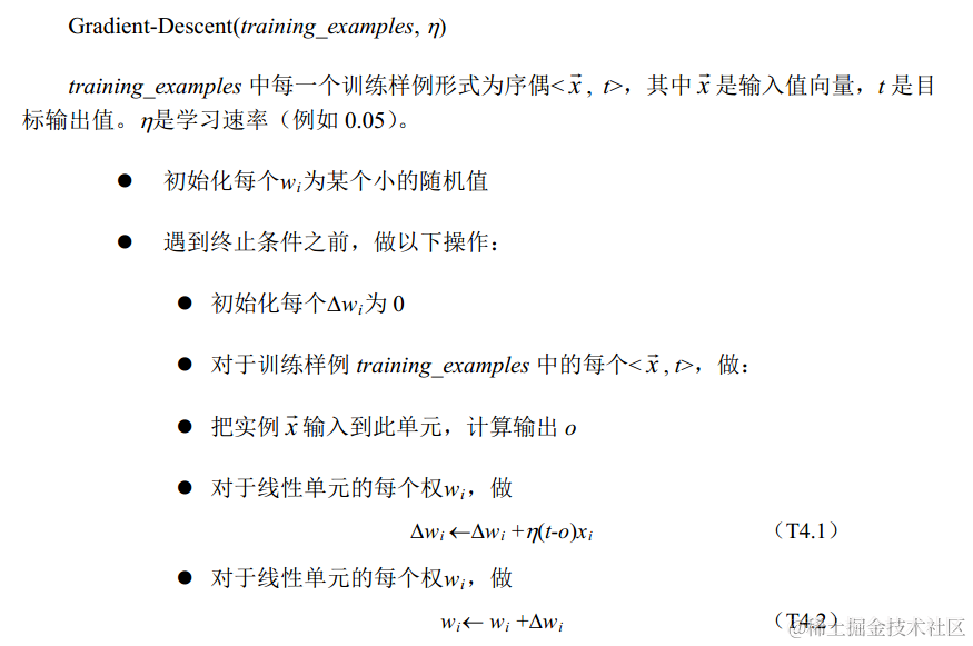 要实现梯度下降的随机近似,删除(T4.2),并把(T4.1)替换为 。