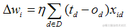 其中,t、o和xi分别是目标值、单元输出和第i个训练样例的输入。