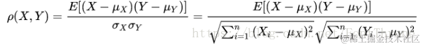 首先我们来确认皮尔逊系数的一种实现方式,下面的这个公式十分简单,只要能够使用R语言中的求均值,求和,开平方等基本操作就可以了.