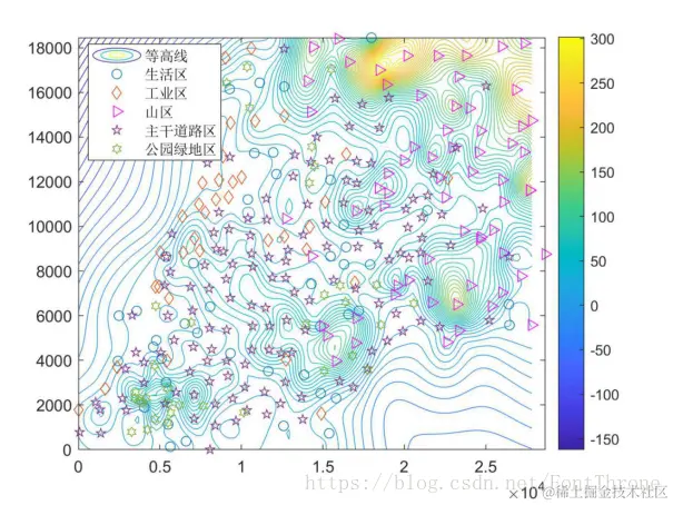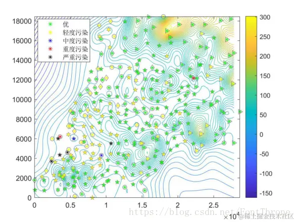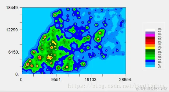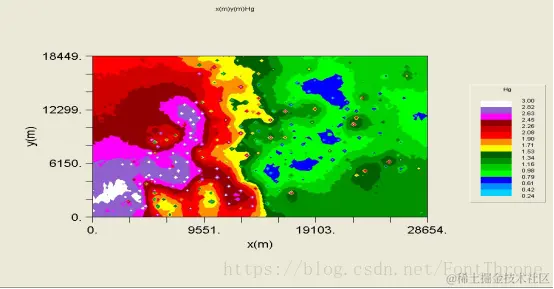 由图可得:在坐标为(4888,7328);(6864,7328);(12659,3014);(18253,14082)这几点处砷含量较高。可推知砷污染源在这些区域内。