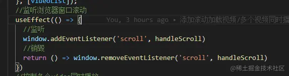1.现在useEeffect里添加滚动事件,并通过return进行销毁