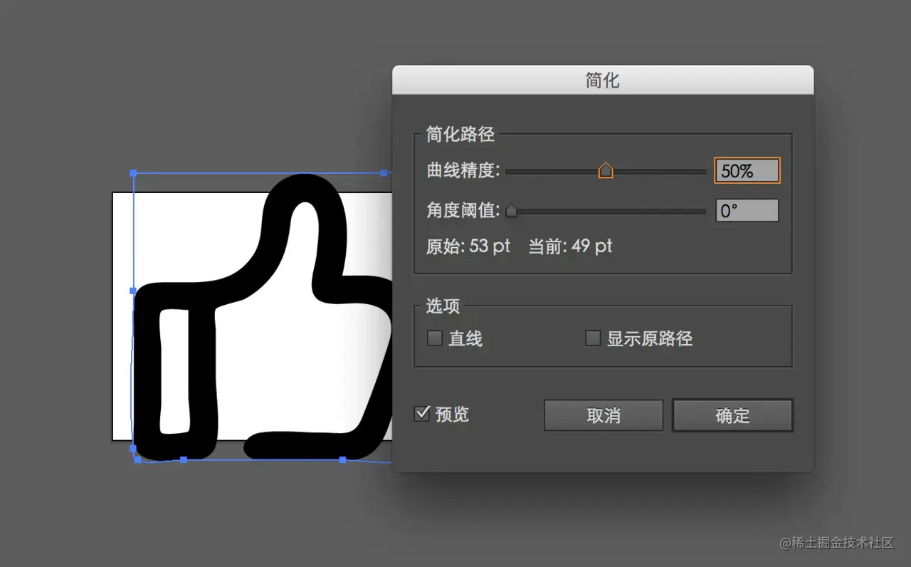 使用 Illustrator 菜单栏上的 对象>路径>简化 优化图形的节点
