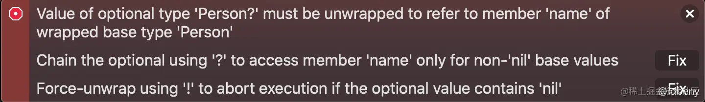 系统提示要想用可选类型对象引用成员必须强制解包或添加