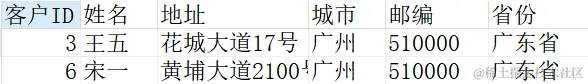 我们要查询城市是"广州"或者姓名为"王五"的客户信息,可以这样写