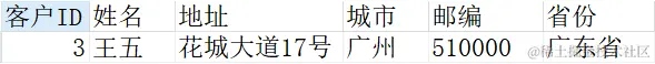 我们要查询城市是"广州"并且姓名为"王五"的客户信息,可以这样写