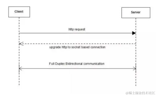 (3)单个 TCP 连接 -初始连接使用 HTTP,然后将此连接升级到基于套接字的连接。然后这个单一连接用于所有未来的通信。