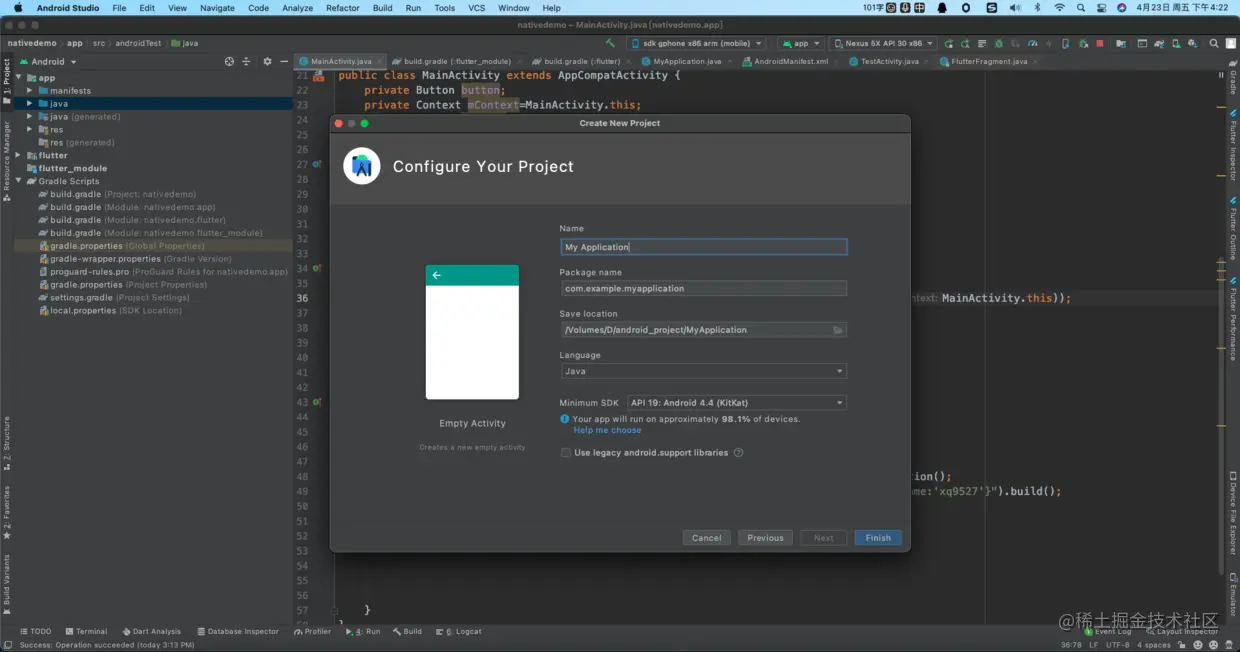 这里要注意安卓原生项目需要跟flutter_module在同一个目录层级
