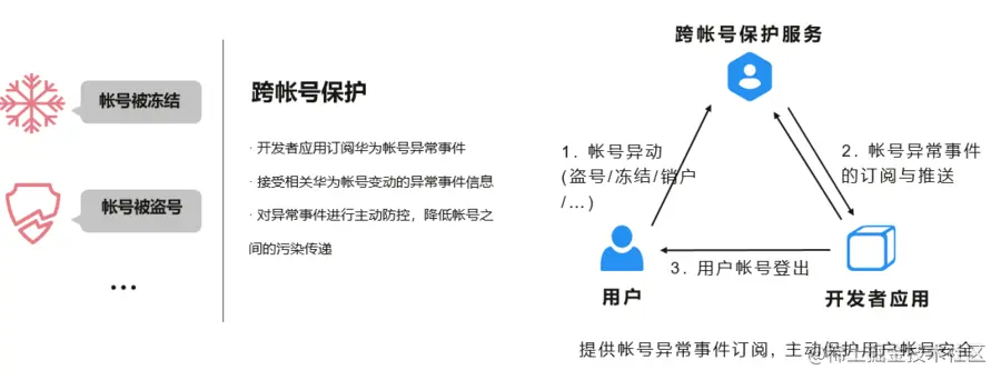 华为帐号服务采用密码+验证码双因素身份验证的方式,遵循OAuth2.0和OpenID Connect等国际标准协议保护,并在整个过程中对数据进行加密,同时提供基于RISC的跨帐号保护功能。在全球范围内隐私合规的同时保障用户登录应用的帐号安全,免去开发者对帐号数据管理安全的烦恼。